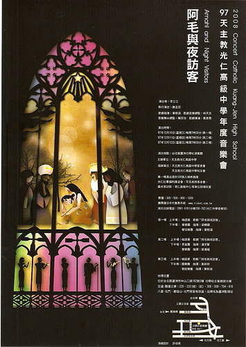 三 實施辦法:參與天主教學校週年度音樂會。內容摘要:本次將演出由美國作曲家為中學生創作的歌劇《阿毛與夜訪客》,這是在一齣在全球已演出超過五千次的歌劇,劇情感人且倍受世界各國觀眾肯定。這是一個在跛腳男孩阿毛身上發生神蹟的故事,劇中能樂觀面對貧窮的阿毛、阿毛與媽媽間真摯的母子情、面對財富誘惑的人性試煉以及耶穌大愛的彰顯。