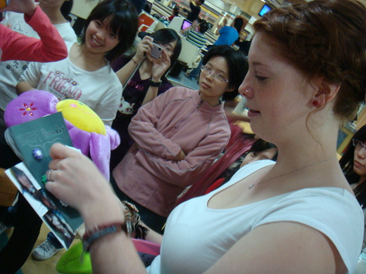 今年班上來了兩位外籍交換學生,引起一陣英語學習熱潮...其實她們是要來學中文的,可是熱情的學生們,可不會隨便放棄這練習英文的大好時機...因此她們有時會無奈地跟我抱怨~"中文沒學精,有時竟也懷疑起自己的英文來(被學生的破英文影響
