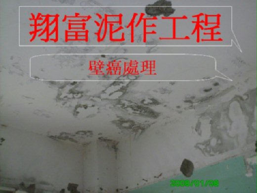 水泥牆壁,甚至於壁紙、水泥漆常出現白粉毛狀的所謂『壁癌』。壁癌出現後,整個水泥漆、壁紙膨突、破裂、剝落,繼而鄰近的牆壁、傢俱顯現綠黴、黑黴。