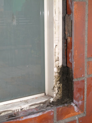 承上篇作好屋頂的滲漏問題後,因為隔間牆窗戶窗框滲漏之故,拆除花磚後可以看見鋁窗窗框和磚牆有明顯的空隙如下照片所示,如此明顯的故意可以判斷絕對是當年施作的師父的老婆跟設計師晚上去看電影導致師父憤恨不平綠雲罩頂!沒有給它搞一下安能對得起早夭的雙親!所以才把窗框留超級大的縫不塞水路好讓水流進去。