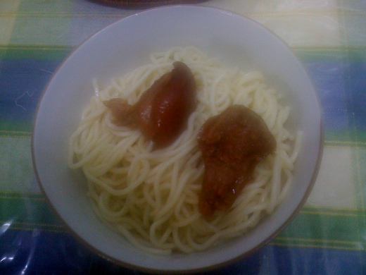 圖一:蝦油&大蒜*拌麵(by mom) + 豬腳(by auntie)