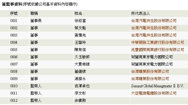 ◎星元電力股份有限公司:大股東有台灣汽電、一樣有兆豐商銀、中華開發工銀、荷蘭商東京電力(日本集團),一樣也算是國營企業轉投資控制的子公司。
