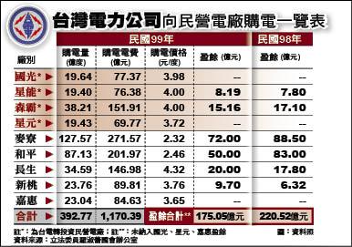 上圖是台電向民營電廠購電一覽表(立委羅淑蕾辦公室提供):