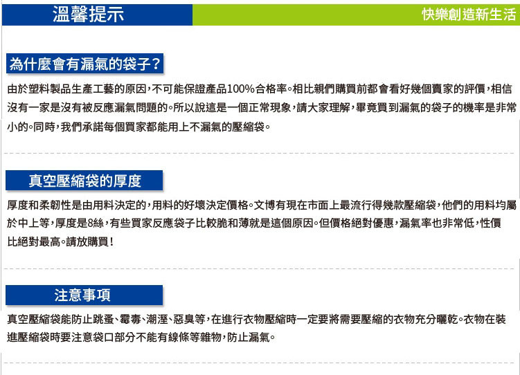 2、壓縮袋會漏氣借不到錢怎麼辦嗎?品質保證,通過中國和日本的雙重質檢標準,次品率0.03%。