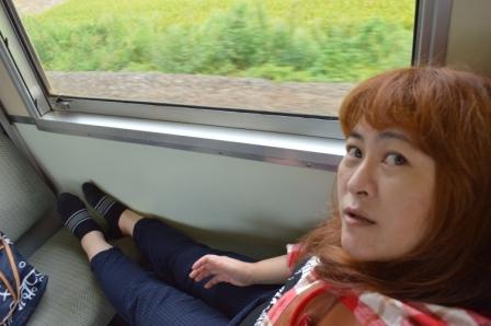 這是從弘前到板柳的普通車~車上人較少~我看大家幾乎都把腿放上來~