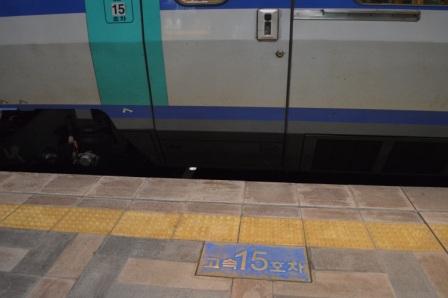 韓國的火車跟歐洲同規格~哪號列車艙看地上的標示往哪個區塊走