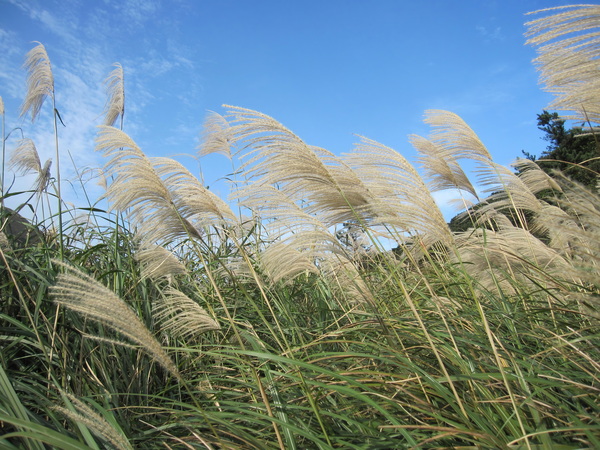 這個季節,芒花正盛。整面山坡鋪滿金黃,登山者的身影在其間緩緩移動,如詩如畫。回首來時路,小觀音山翠綠依舊,三芝的真龍殿巍然矗立,成為行程中溫柔的座標。