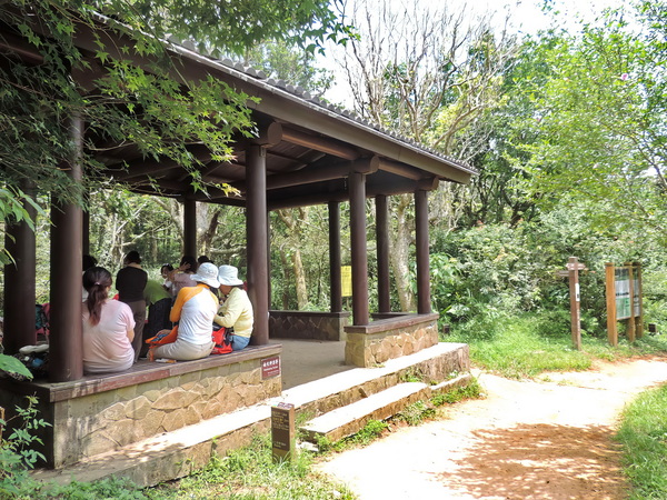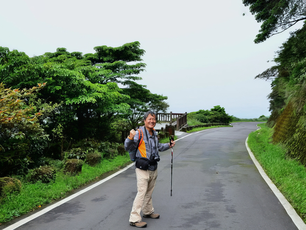 自鞍部起登,石階如天梯般直入雲霄,乍看令人卻步。幸有柏油戰備道相伴而行,緩和了仰望的暈眩。途中一座木造涼亭靜候,既是歇腳處,亦是觀景台,小觀音山青翠的稜線在遠方舒展,山友們在此駐足留影,人與景相映,自成畫中畫。
