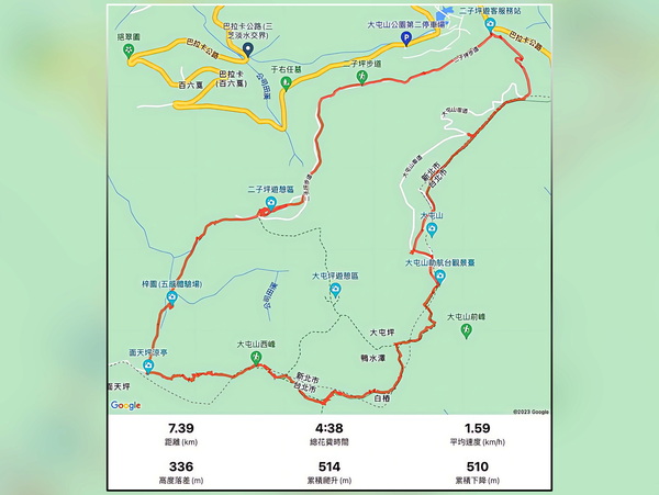 這條O形路線,自鞍部起,經主峰、南峰、西峰,過面天坪涼亭,由二子坪而返,全程七點七公里,歷時五小時。從朝陽初升至午後雲起,大屯山以不同的面貌,接待了又一日的旅人。