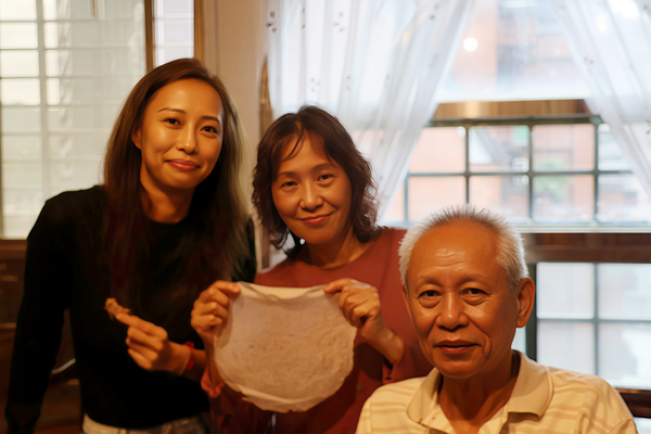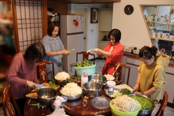 九十餘高壽的母親,平日行動遲緩、言語清淺,可每到這一天,眼眸便會泛起光亮。我懂她的心情——她不是貪嘴,是想看見兒孫滿堂,是想看見這個家還熱鬧著,還團圓著。為了博取母親的歡心,更為了凝聚我們兄妹之間的情誼,每年這時,我與妻都會主動發出邀請,兄弟姊妹們便從四面八方趕來,齊聚我家。大家圍著那張老圓桌,一邊聊天一邊動手包潤餅。有的手巧,捲得整齊漂亮;有的粗心,餡料掉了一桌,惹得眾人笑罵。母親坐在一旁,看著我們,嘴角的笑意一直沒有褪去。