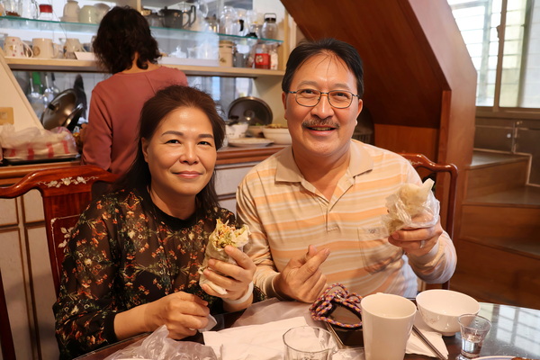 除了潤餅,妻又做幾樣下酒菜,飯桌上備妥了炒蛤蜊、滷牛腱、涼拌蘿蔔,豆豉蚵,味噌魚。妹婿打開高粱酒,眾人斟滿酒杯,酒酣耳熱間,話匣子悄然打開。憶童年趣事,念父親在世時的清明,談那些早已淡出視線的家鄉老店,笑聲與輕歎交織,說著說著,有人笑了,也有人悄悄紅了眼眶,泛淚也浸著暖意,因為我們知道,這些回憶,這些滋味,正被我們一口一口地吃回去,好好地收在心底。屋內燈光柔和,母親靠在椅上,閉目靜聽,嘴角始終掛著淺淺笑意。