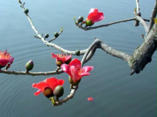 中學時住處是一棟雙拼三層樓公寓 隔壁是戶有院住家 在小院靠我們這棟公寓處 有株高高木棉樹 每當花開時 我會從屋頂陽台設法鉤過來一樹枝 在弟弟協助下 採下幾枝花枝插在瓶中近觀