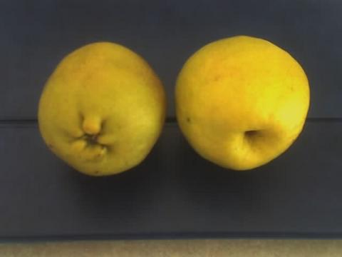當我再去市場買香梨時特別注意凹的凸的都挑了 回來與兒子一口凹的 一口凸的細細品嘗 真的凹的比較甜 果味比較重 我為他們拍了照 就是下面那張照片---男左女右 朋友們選購香梨時請參考噢