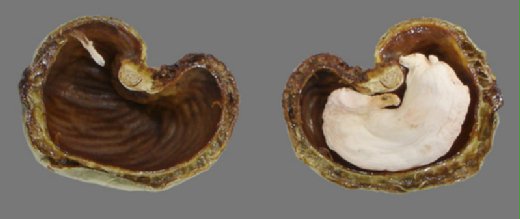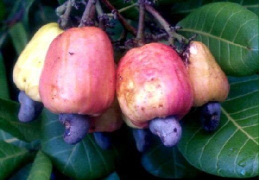 腰果是一種容易生長的熱帶植物 在樹上的腰果 果體分上下兩部分 上部是個如梨般大小的果肉 它不是真正的果子 學名叫果托也叫假果 真正的果子是下部形似腎臟的那部份 上部可製果汁 下部剖殼取仁製作我們熟悉的[腰果]