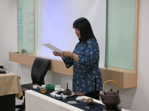 4.茶碗:始於唐代的飲用方式,剛開始是以食器代替茶器,到後來才慢慢有將其定在茶器的特別定位,不但區分了食器及茶器,還有它獨特的歷史定位,從飲用花茶到現代以湯匙泡茶分杯,這一步步的演變,除了人們的巧思還有歷經時代變遷的洗禮,現在我們沒有侷限在以碗喝茶或以碗茶泡茶,本次的表現方式是以碗為沖茶器,利用湯匙分杯,在快慢中取得平衡,讓品茶者喝到均勻的茶湯更頂技巧,本次以茶盞的呈現,除了呼應茶碗的型式更顯現了,新的茶藝風範