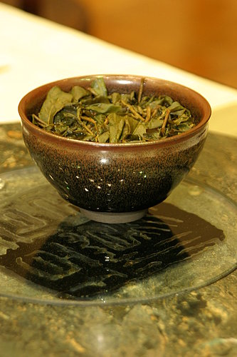 茶湯上黃,下透綠光,精采絕倫,謂之茶王,當之無愧。