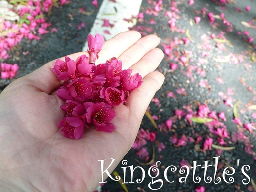 第二張是今年三月初到汐止大尖山所拍的~當時沒幾株櫻花開,所以看到某株櫻花樹下有密密麻麻被雨水打落的櫻花瓣,就很興奮地拍張照,以茲留念~呵