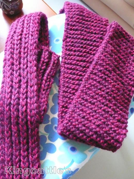 後來還是織了圍巾,只是用了不同的織法 -- 元寶針。(照片左邊)