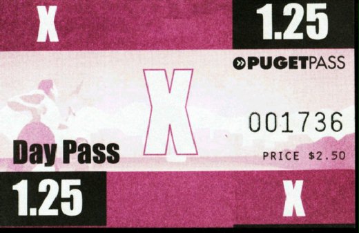圖下:西雅圖市內公車的一日周遊券正反面,售價是2.5元