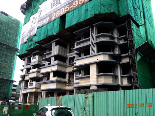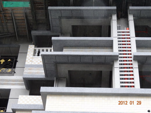 想買玉上園的,或者是已經購買玉上園G棟的,不妨乘機看個清楚,玉上園G棟與H棟的對稱組合,每一戶都有大面積的雨遮,不過寶路建設把部分鋁窗設在雨遮的中央位置,所以看起來使用範圍比較擴大,從照片中可以見到完工前的雨遮範圍。