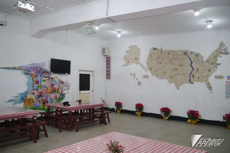 馬祖發現53年前美軍顧問團所繪製的美國地圖,該連官兵在另面牆上畫上融合基隆港到馬祖補油庫的「回家之路」(朱明攝)© 由 風傳媒 提供 馬祖發現53年前美軍顧問團所繪製的美國地圖,該連官兵在另面牆上畫上融合基隆港到馬祖補油庫的「回…