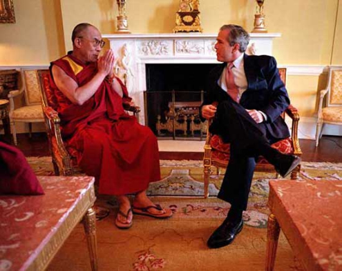 這些年來,不但贏得西方主流媒體的支持,還成為各國元首的座上嘉賓。在和美國總統布希的合影上,我們還可以發現,他大概是唯一能夠穿著拖鞋,面見布希的第一人。此外他還拿到一座諾貝爾和平獎。