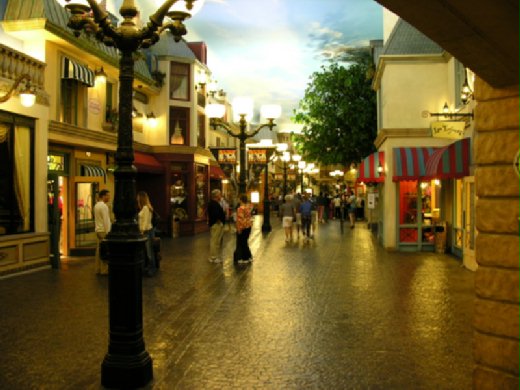 『愷撒宮』的『夜晚』又是另一番景象。雖說小街兩旁古色古香的店鋪燈火溫暖誘人,而我更願意在『月光』和街燈下,漫步石板街。恍然之中竟不覺得這是人工的夜色,心緒也已回到了大洋彼岸兒時的小城——小城也有石板街,更有月光淡淡燈光昏黃的迷人夜……