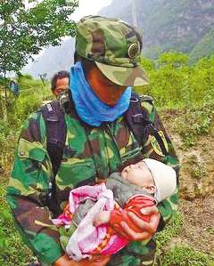 附記:據報導,在地震重災區北川,在倒塌的房屋之下,一個年輕的母親,撐起身子,護住身下才三、四個月大的孩子。母親因身體被壓變形而死去,受到母親庇護的嬰兒則毫髮未傷,安靜地睡著在一條紅底黃花的小被裡。母親在手機上留下一條遺言,『親愛的寶貝,如果你能活著,一定要記住我愛你。』