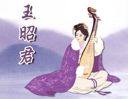 據說「昭君出塞」時,因感於離鄉背井及身世的飄搖坎坷,王昭君不禁悲從中來,彈奏「出塞曲」以抒發憂愁。不料,從旁飛過的大雁聽到這樣哀怨婉轉的曲調後,紛紛為這位絕世佳人的遭遇而柔腸寸斷、忘了振翅,以至於都掉落到地面上來。後人就以「沉魚落雁」中的「落雁」二字來形容王昭君的美。