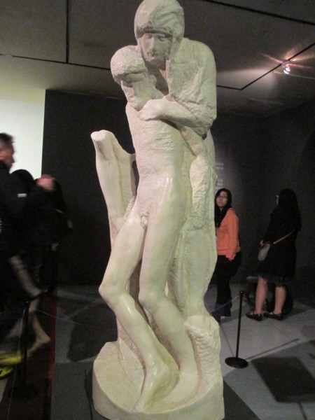 *<聖殤>,傳說有三、四座作品,年輕時製作的聖殤,聖母年輕貌美,古代傳說,純潔貞潔女子,是不老,保有年輕的形象;聖母,面,坦然接受的表情;左手伸出,也是接受我的兒子所受的痛難。胸前有綁掛孩子的布巾(有簽署),我是抱你的呀,連你死了,還是抱你的呀。母子人神。