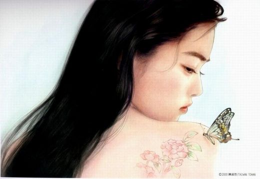 夢中花蕊 , 是你為我刻烙的紋身 , 也是你筆梢澆沃下開出的燦顏 , 而脆弱的淚腺盡在思憶中打轉 , 呼喊的淚水不輕易滴落 , 只因為緊緊守住矜持的永恆 。隱形的翅膀一直擁抱著我的夢 ......