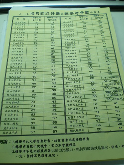 3. 轉學考不是比程度而是比耐心比毅力,堅持到最後就是贏家。指考、學測則不一定,堅持不見得會成功。