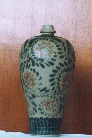 遼磁州胎地綠彩纏枝花紋鳳首把壺