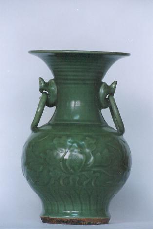 龍泉青瓷纏枝花紋獸啣環耳瓶