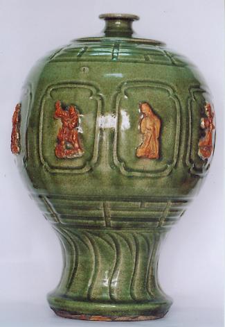 龍泉青瓷開光窯紅八仙紋梅瓶