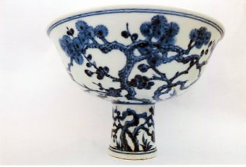 大明宣德年製青花松梅竹紋高足碗