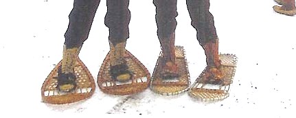 由於野外雪深及膝,雪軟如泥, 寸步難行, 如不穿上「雪鞋」 (snow shoes),腳會深陷在雪中,難以自拔。加拿大原住民於是利用獸皮細絲和木條, 編成外型尺寸很像網球拍的雪鞋, 穿在腳上,方便行走。穿上雪鞋走路或散步, 就叫做「踏雪」 snowshoeing, 因為 網球拍狀的雪鞋, 穿在腳上, 有點笨重, 使人走起路來, 不能如履平地, 而需要「一步一腳印」地提高右腳, 放下, 再提左腳, 「踏雪而行」.