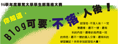 華梵學生部落格大賽原截止日因逢期中考,為能讓更多人共襄盛舉,報名截止延至11月16日!請大家告訴大家!