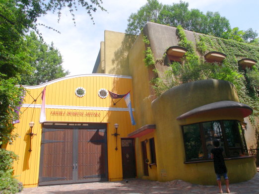 美術館外牆由蔓生植物任意攀爬,呈現自然的野趣。
