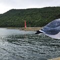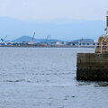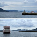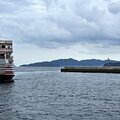 施普雷河遊船絡繹不絕,遠方鐵道橋上有快速列車(白色)與地方列車(紅黃)正在會車。