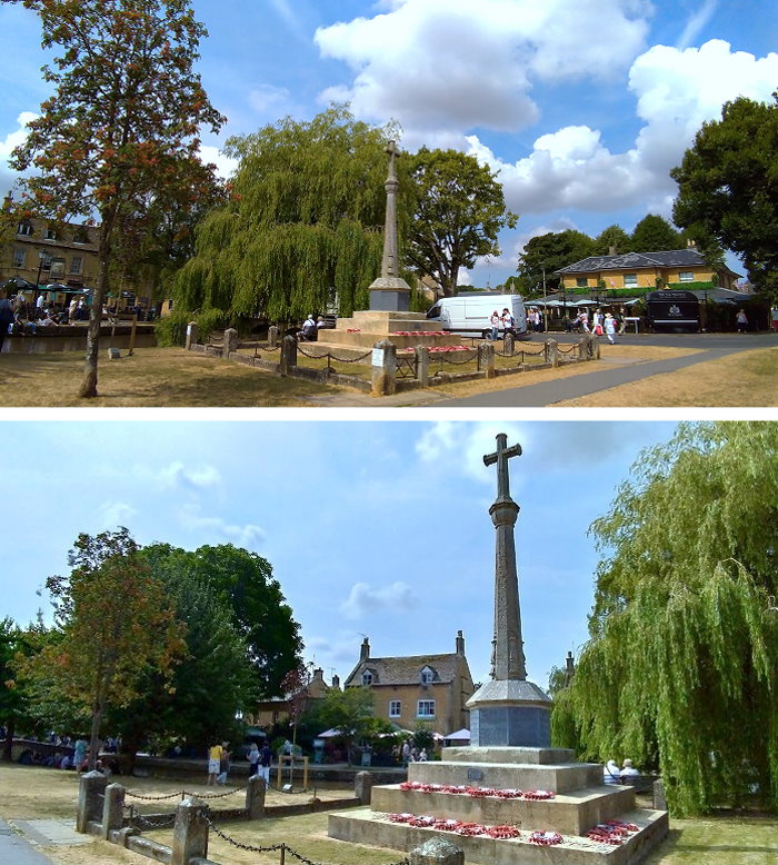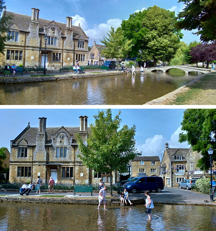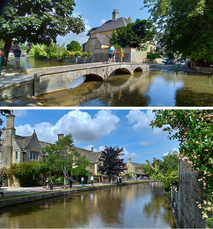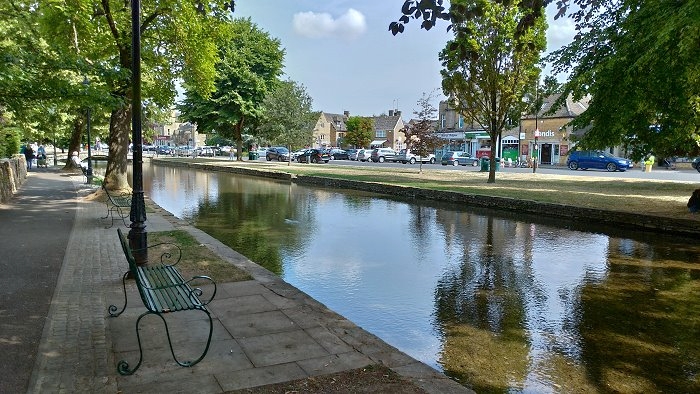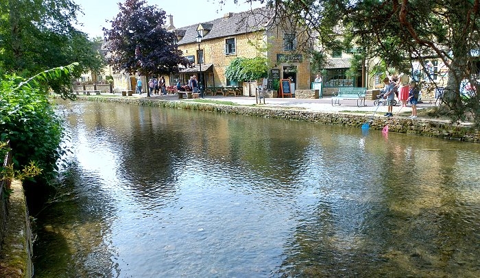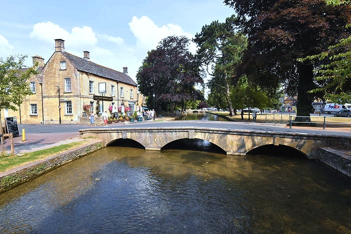 水上伯頓(Bourton-on-the-Water),屬於科茲窩傑出自然風景區的一部分,村莊中心沿河地帶的大部分為指定的保護區,溫德許河(River Windrush)流過這座小鎮,河岸兩側是綿延寬闊的綠地,鎮上有許多以蜜黃色科茲窩石建成的屋舍,橫越的古樸石橋及與街道的完美組合,因而有「科茲窩小威尼斯」的稱號,是科茲窩這一地區最美麗且名氣最大的小鎮,英國版小橋流水人家鄉村田園風情畫之體現。