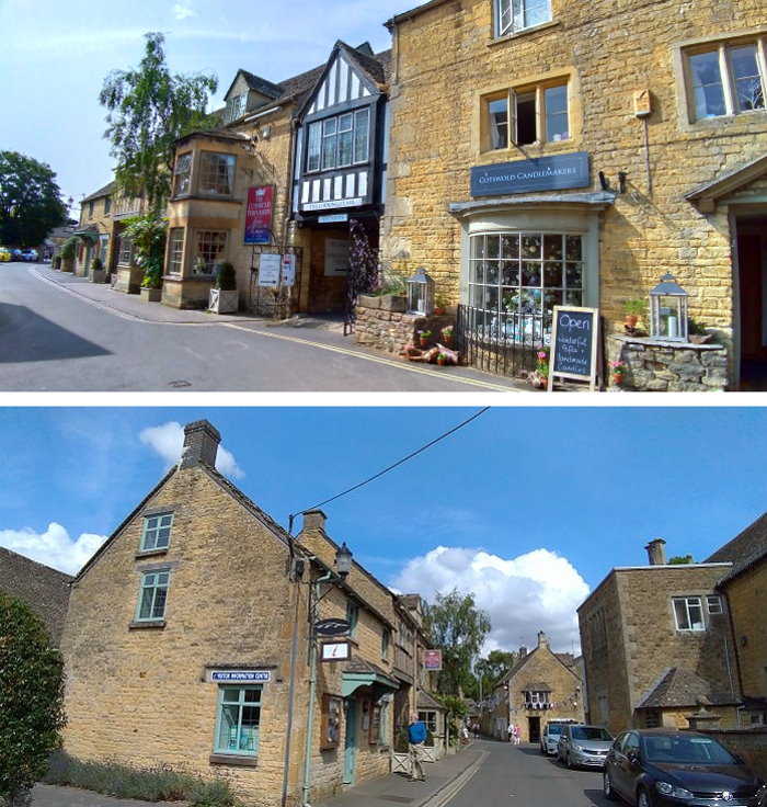 離開河岸轉往鎮區,水上伯頓鎮上建築大多數建於科茲窩最富裕的16及17世紀時期。