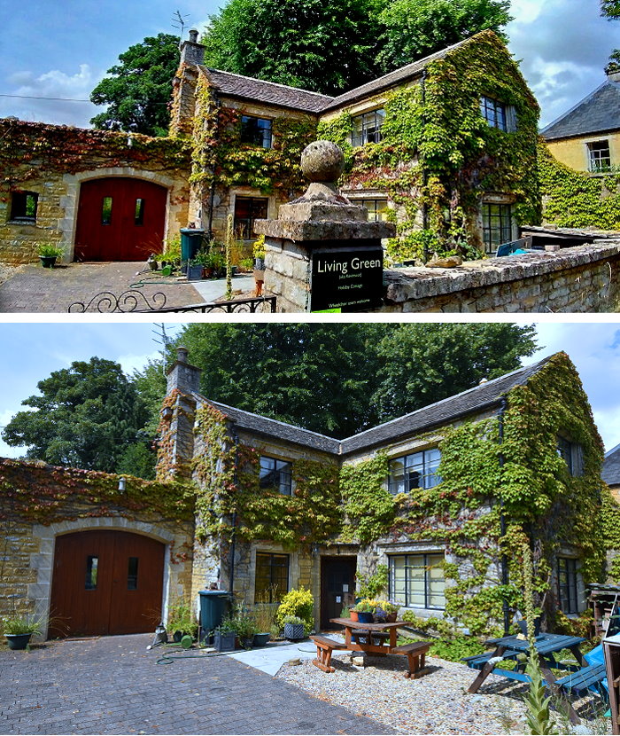 水上伯頓的屋舍以「科茲窩石」這款石材搭建而起的傳統房屋,錯落在小鎮間。石頭色澤會因為天候變化而有所改變,變成閃閃發光、美麗的蜜糖色,所以就被稱為「蜂蜜色石頭屋」、「蜂蜜萊姆石」。