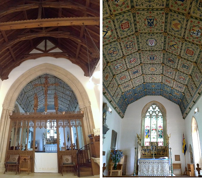 主祭壇的部份是建於 1328 年的聖壇所,天花板由五彩繽紛的家族章紋構成。