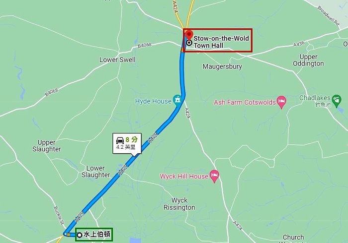 從水上伯頓(Bourton-on-the-Water)驅車往斯托昂澤沃爾德(Stow-on-the-Wold),僅4.2英里。