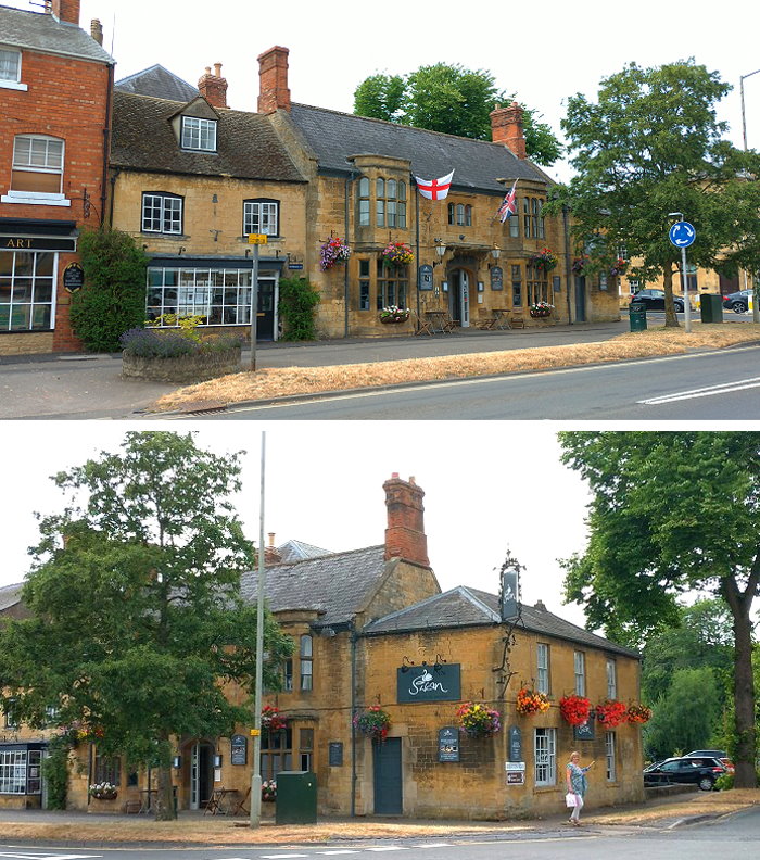 High Street上有許多形式優雅的 17、18 世紀的建築,多作為旅館、餐廳與商店,↑圖為The Swan Inn。