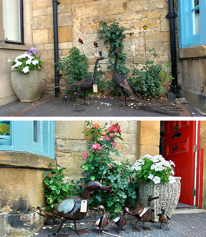 Moreton-in-Marsh旅客服務中心。雖是科茲窩北部大門,其實鎮上不大,也沒有特別景點,因有巴士和火車,一般到此都當作中轉站。當時自駕就是順路多停個科茲窩小鎮,因此僅根據旅客服務中心前方柱子上的圖示標注具有年代屋舍路線逛逛。