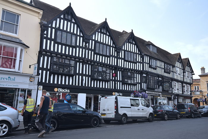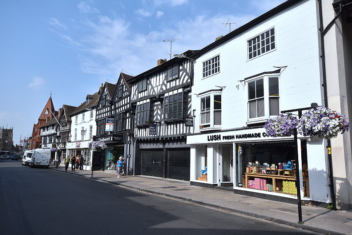 High Street 在 1594 年和 1595 年受到兩場嚴重火災的嚴重影響,重建後許多建築都是以黑白外牆為特色的伊莉莎白時代建築(Elizabethan architecture)。