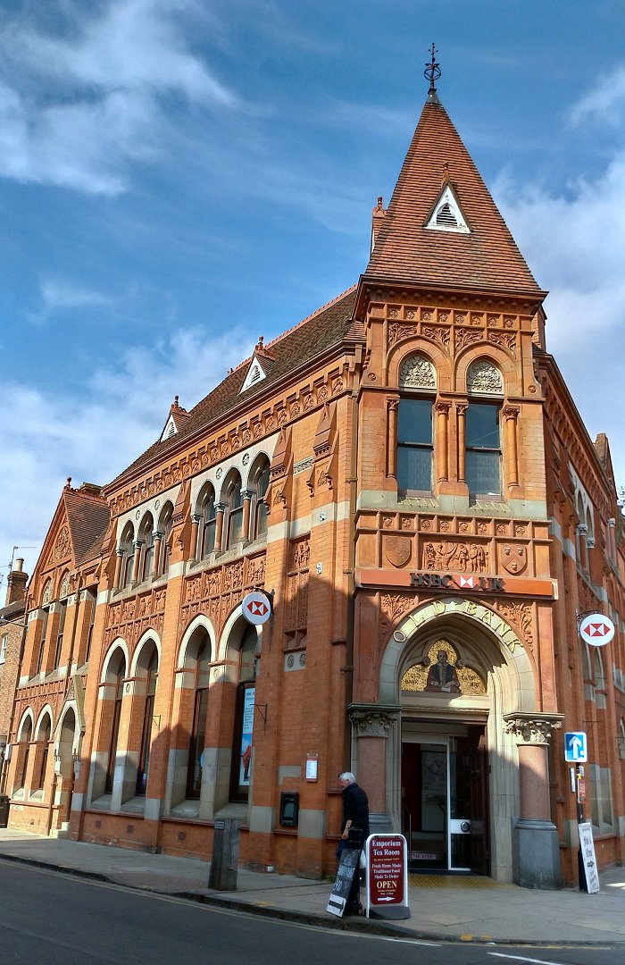 匯豐銀行,建於 1883 年,是鎮上最美的「高維多利亞(High Victorian’ manner)」風格的建築。精美的赤陶帶狀浮雕裝飾,呈現了莎士比亞戲劇中的15個場景,正門上則有莎士比亞像。