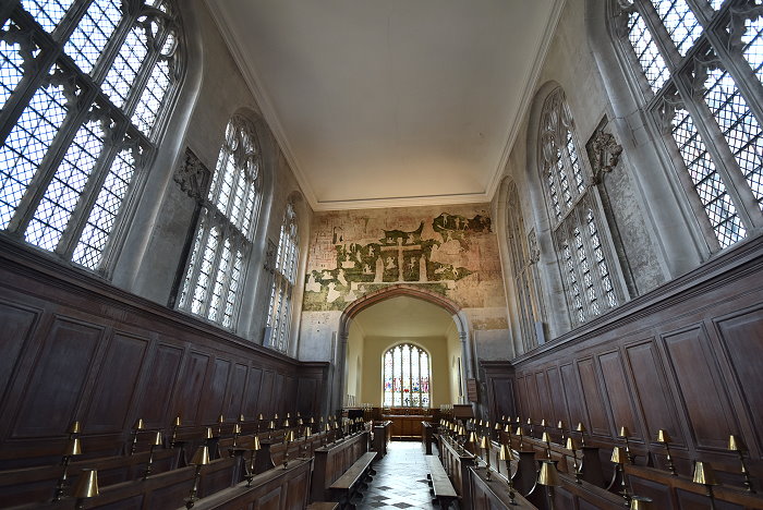 這座建築最早的部分(耳堂和塔樓的下部)可追溯至 13 世紀。中殿和過道於 14 世紀教堂成為大學學院時重建。最後,在 15 世紀末,以宏偉的垂直風格重建了聖壇,並增加了天窗。